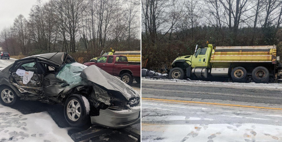 1 Injured In Stanwood Crash Involving Car Plow Truck