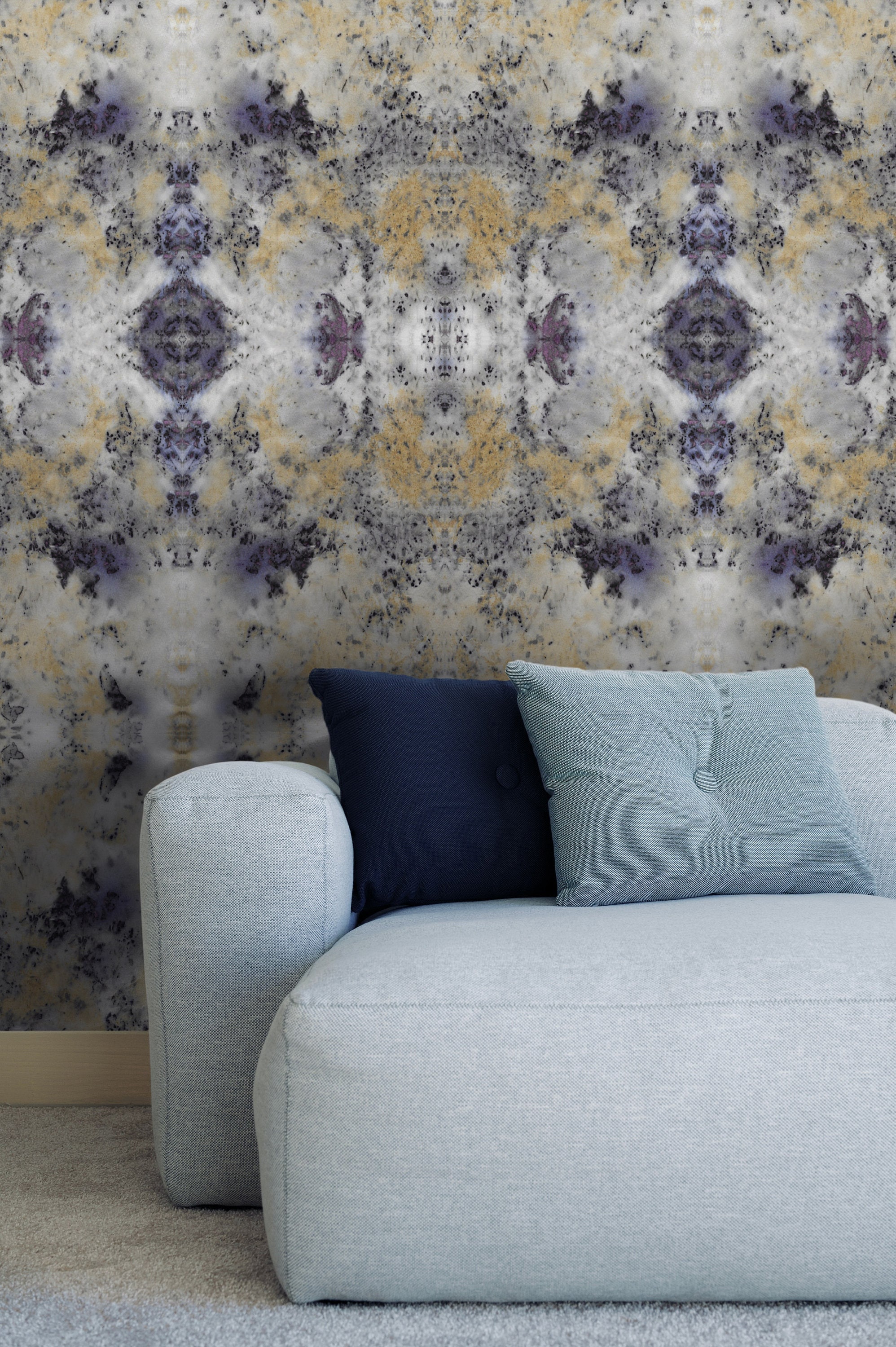 Modern Bohemian Wallpaper Kaleidoscope Pattern Violet Blue Etsy
